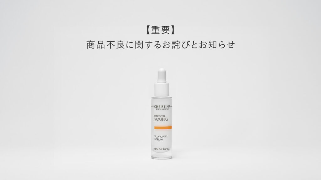 このたび、イスラエル本国より通達があり、2025月11月に発売いたしました「FOREVER YOUNG3ロニックセラム」一部製品ロットにおいて、商品に色の変化が確認されました。